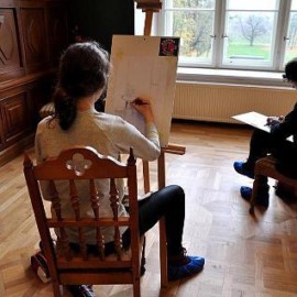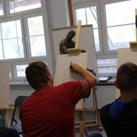 Zajęcia z rysunku- 4 godz. tygodniowo w pracowni plastycznej, w tym : umiejętności w zakresie kompozycji; rysunku- postaci, martwej natury, portretu, architektury, podstaw malarstwa, grafiki-ilustracja, plakat, ulotka, logo.