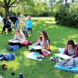 Przynajmniej dwa razy w roku klasa graficzna wyjeżdża w plener. Po to, aby wiedzę teoretyczną nabytą podczas ćwiczeń w pracowni rysunkowej oraz graficznej skonfrontować z naturalnym obiektem.  Jest to również okazja do rozmów o sztuce, architekturze, malarstwie... poza murami szkoły.