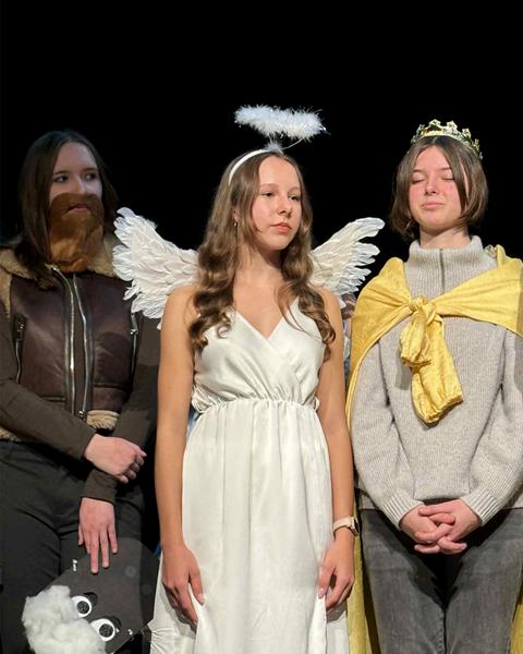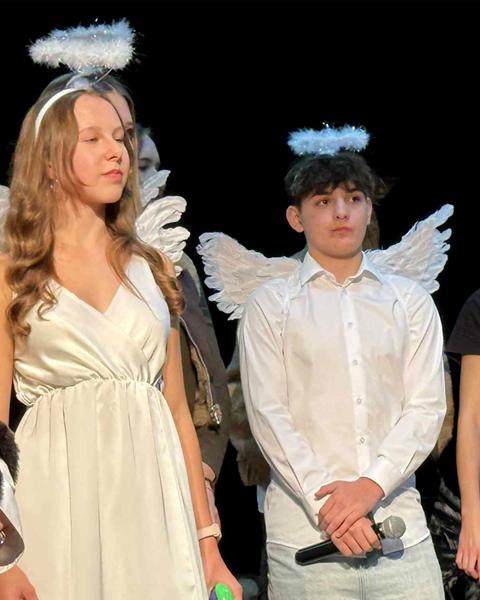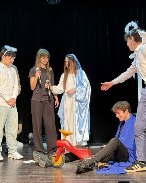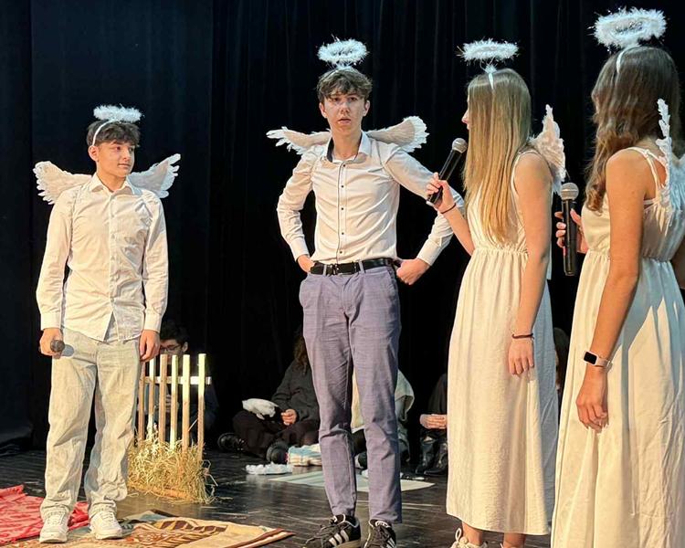 Historia narodzin Jezusa w Betlejem jest niezmienna – i właśnie dlatego opowiedzenie jej w nowy, oryginalny sposób stanowi nie lada wyzwanie. Nasi uczniowie podjęli je z odwagą i wyczuciem, prezentując opowieść znaną od wieków w formie świeżej, ciekawej i zaskakującej. Połączenie klasycznej symboliki jasełek z nowoczesnymi środkami wyrazu spotkało się z ciepłym przyjęciem widowni.