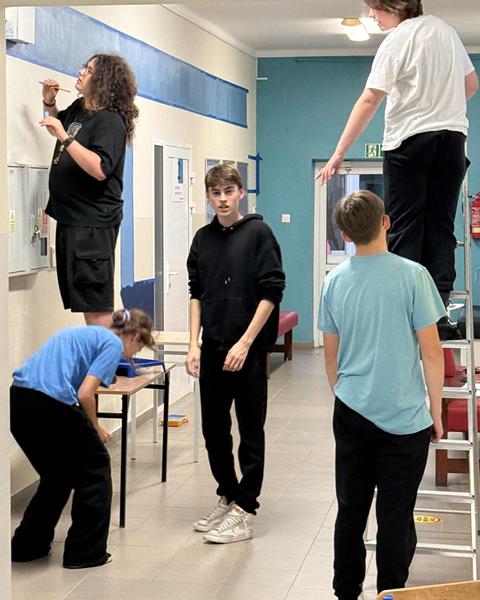 Młodzież z klasy pierwszej kierunku Grafika 3D dzisiejszej nocy rozpoczęła prace nad projektem, który wkrótce ozdobi mury naszej szkoły.